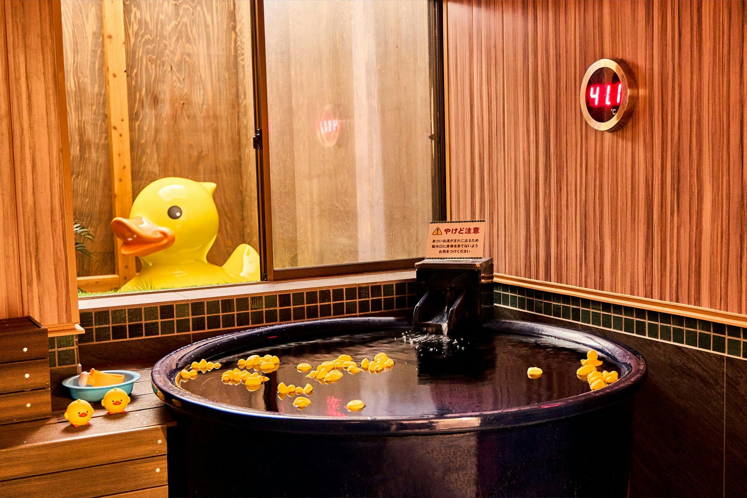 ห้องอาบน้ำขนาดใหญ่ที่มีปริมาณน้ำพุร้อนมากที่สุดในเทนโดออนเซ็น มีทั้งอ่างอาบน้ำในร่ม อ่างกลางแจ้ง และซาวน่าแบบบาร์เรล ห้องอาบน้ำส่วนตัว (ฟรี) มีให้เลือกถึง 9 แบบที่มีแนวคิดแตกต่างกัน เช่น "บ่อไดโนเสาร์" ที่เด็กๆ จะชื่นชอบ หรือ "บ่อโฮตารุ" ที่ให้ความผ่อนคลาย ห้องอาบน้ำส่วนตัวไม่ต้องทำการจอง สามารถเข้าใช้บริการได้ทุกเมื่อและหลายครั้งตามต้องการ