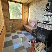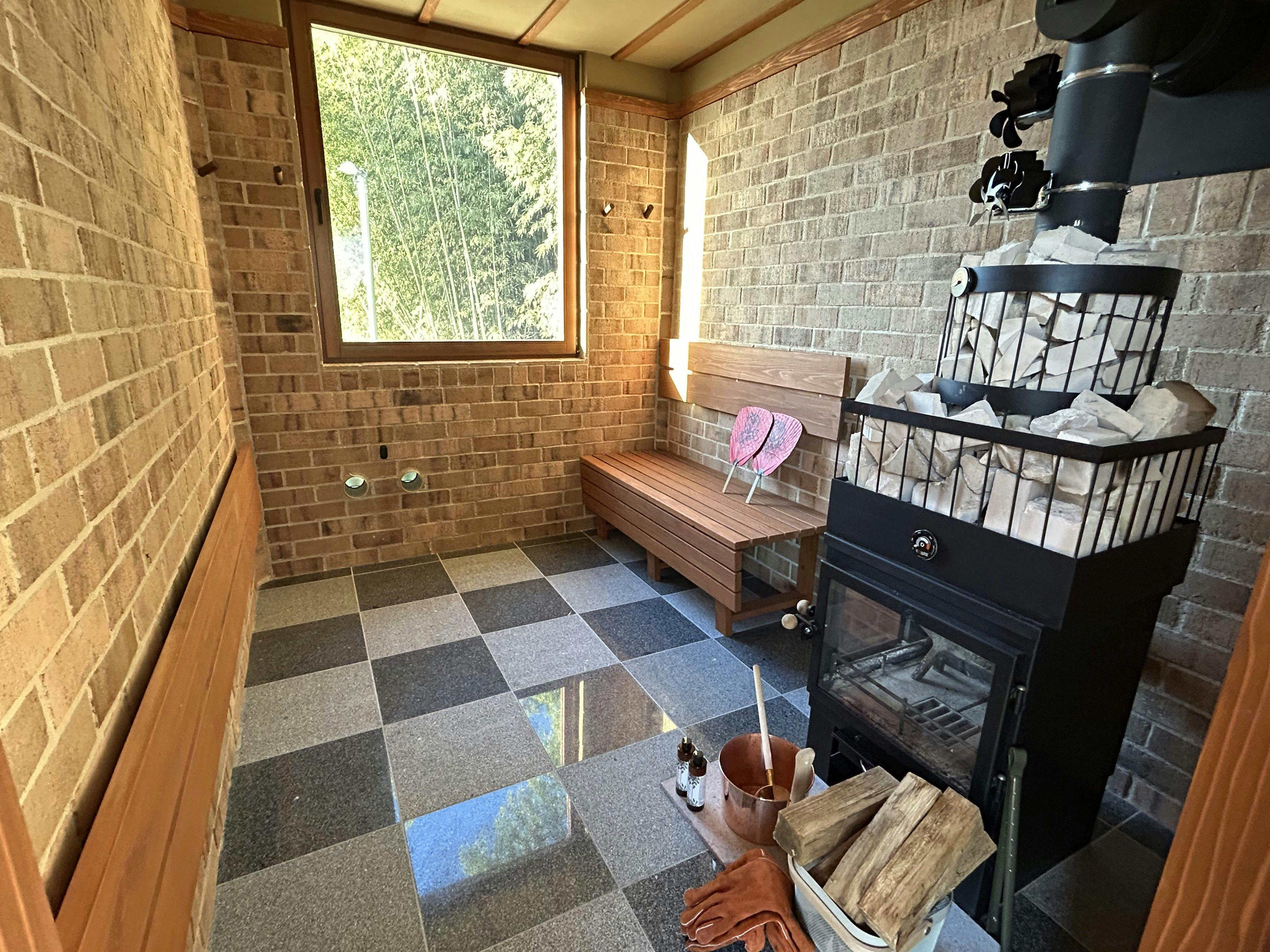 มีครับ พื้นของซาวน่าอิฐที่ใช้ฟืนสร้างจากหินแกรนิต สามารถเพลิดเพลินกับการอบหินร้อนได้