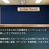 โรงแรมรูปแบบใหม่ที่ได้รับการปรับปรุงจากคลินิกเดิมในเดือนเมษายน ปี 2025 เรามีบริการอาหารเช้า (ฟรี) ด้วยข้าวปั้นและซุปหมูร้อนๆ ที่ทำสดใหม่โดยใช้วัตถุดิบท้องถิ่น ขอเชิญทุกท่านมาใช้บริการ!