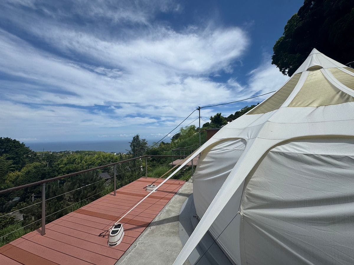 จังหวัดชิซูโอกะ/อิโตะทุกห้องมีน้ำพุร้อนส่วนตัวแบบไหลตรงจากแหล่งกำเนิด พร้อมการตั้งแคมป์สุดหรู ความสะดวกสบายของโรงแรม×ความสดชื่นของธรรมชาติ