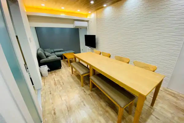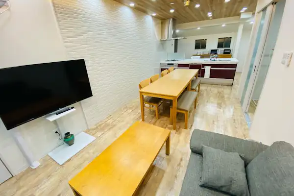 ขับรถเพียง 30 นาทีถึงมิยาจิมะ! สามารถเลือกตัวเลือกพักพร้อมสัตว์เลี้ยงได้ พักได้สูงสุด 12 คน ห้องนั่งเล่นกว้างขวางเหมาะสำหรับกลุ่มใหญ่ มีระเบียงไม้พร้อมหลังคาสำหรับปิ้งย่าง BBQ โดยไม่ต้องกังวลเรื่องสภาพอากาศ (ห้ามใช้ถ่าน) และสามารถสนุกกับดอกไม้ไฟในสวน ภายในมีครัวระบบ, เครื่องซักผ้า, เครื่องใช้ไฟฟ้า, จานชาม และอุปกรณ์ทำอาหารครบครัน นอกจากนี้ยังมีสิ่งอำนวยความสะดวกต่างๆ จำหน่าย เพียงนำวัตถุดิบมาเองก็สามารถเข้าพักได้อย่างง่ายดาย เพลิดเพลินกับช่วงเวลาที่สำคัญกับครอบครัวหรือเพื่อนในพื้นที่ที่ได้รับการปรับปรุงใหม่และสะอาด
