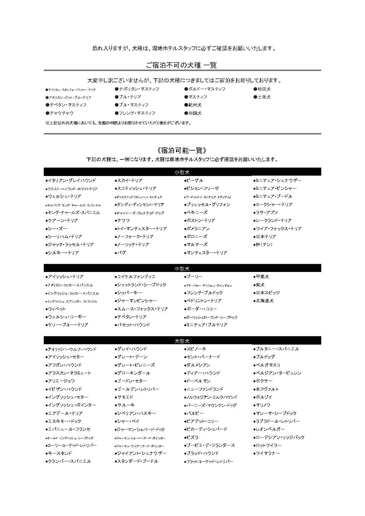 | สัตว์เลี้ยง | ได้ ค่าที่พักสำหรับสัตว์เลี้ยง (สุนัข) คือ 3,300 เยน (รวมภาษีแล้ว)