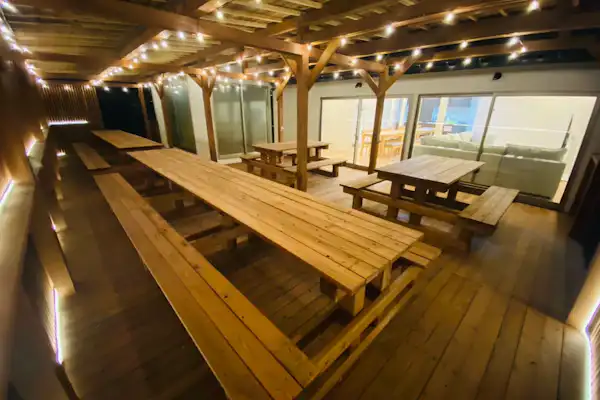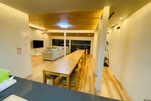 ขับรถไปยังมิยาจิมะประมาณ 30 นาที! ที่พักเงียบสงบท่ามกลางธรรมชาติ พร้อมแสงไฟประดับที่สวยงาม รองรับผู้เข้าพักได้สูงสุด 24 คน! มีห้องนั่งเล่นกว้างขวาง ห้องน้ำ อ่างล้างหน้า และห้องอาบน้ำอย่างละ 2 ชุด เพื่อความสะดวกสบายและไม่รู้สึกอึดอัดแม้จะมากันเป็นกลุ่มใหญ่ มีห้องนอนทั้งหมด 6 ห้อง สามารถจัดพื้นที่ส่วนตัวได้ เหมาะสำหรับการเข้าพักของหลายกลุ่มในเวลาเดียวกัน เพลิดเพลินกับ BBQ บนระเบียงไม้ที่มีหลังคา (ไม่อนุญาตให้ใช้ถ่าน) และสามารถจุดพลุเล็กๆ ได้ ที่จอดรถรองรับได้ถึง 6 คัน ใช้เวลาร่วมกับเพื่อนหรือครอบครัวเพื่อสร้างความทรงจำดีๆ