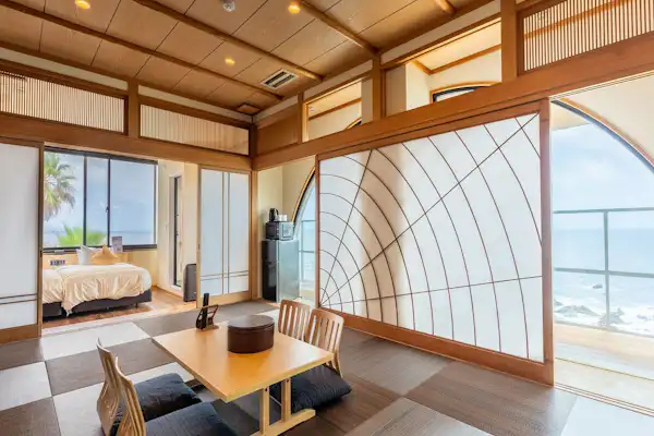 Yahoo!トラベルユー... 4/4/2026We stayed here with our family of five on a day with extremely stormy weather. The front desk staff were very helpful, and we appreciated the smooth check-in.The Room was spacious and clean, and we were able to relax comfortably. What stood out most was the food—every seafood dish was excellent and truly delicious.A couple of disappointments: there were leftover crumbs from previous guests in the Room, so I’d like to see more thorough cleaning. Also, it was tough that the walkway to the large public bath has no roof during bad weather. It may be difficult to change, but we would be happy if this could be improved.Our whole family liked it, so we would like to stay again.