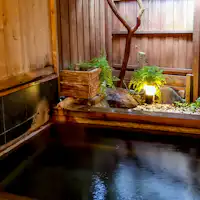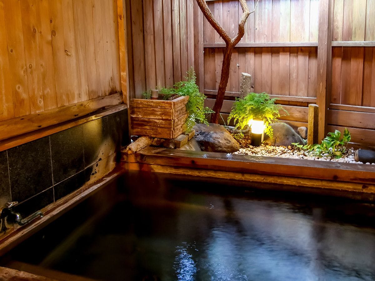 ・เวลาทำการ: 15:00~23:00 ・น้ำพุร้อน: มี ・ไหลผ่านตลอด: มี ・น้ำพุร้อนขุ่น: ไม่มี ・ข้อควรทราบ: แหล่งที่มา 100% น้ำพุร้อนภายในที่พักมี 2 แห่ง และทั้งสองแห่งให้บริการแบบเหมาส่วนตัว คุณภาพน้ำเป็นน้ำพุร้อนประเภทคลอไรด์ ซึ่งเชื่อว่าช่วยให้ร่างกายอบอุ่นได้นานและมีผลดีต่ออาการหนาวง่าย เนื่องจากอุณหภูมิน้ำจากแหล่งกำเนิดสูงประมาณ 100 องศา ที่พักจึงรับการจองเป็นรายครั้งต่อการแช่หนึ่งครั้ง หลังเช็คอินแล้ว กรุณาทำการจองเวลาที่ต้องการใช้บริการ