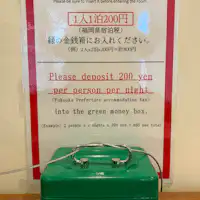 | ภาษี | ภาษีที่พักจังหวัดฟุกุโอกะ ค่าที่พักท่านละ 1 คืน 200 เยน จะถูกเรียกเก็บเพิ่มเติม กรุณาใส่เงินในกล่องเงินสีเขียวที่วางอยู่ข้างแท็บเล็ตเช็คอิน |