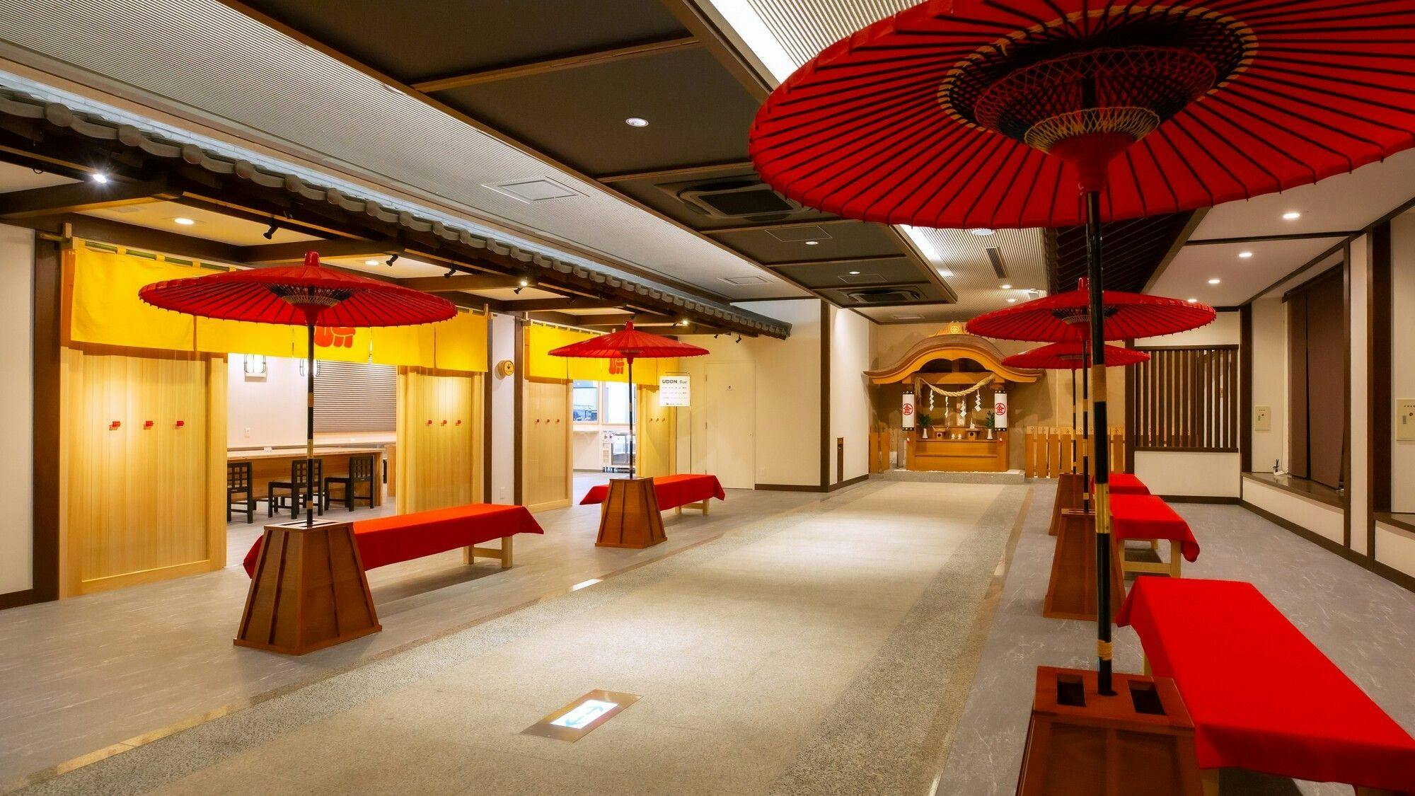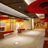 "UDON na HOTEL โคโตฮิระ" เป็นโรงแรมสไตล์ใหม่ที่เกิดจากการปรับปรุงเรียวกัง เมื่อเดินผ่านผ้าม่านขนาดใหญ่ที่ทางเข้า... จะพบกับทางเดินที่ออกแบบให้เหมือนเส้นทางศาลเจ้า โดยมี "ร่มโบราณ" ที่ได้รับแรงบันดาลใจจากกลุ่มพ่อค้าแม่ค้าห้าคน และด้านหน้ามีศาลเจ้าขนาดเล็กที่สร้างโดยช่างต่อเรือ ซึ่งสะท้อนถึงบรรยากาศอันงดงามและเต็มไปด้วยเสน่ห์