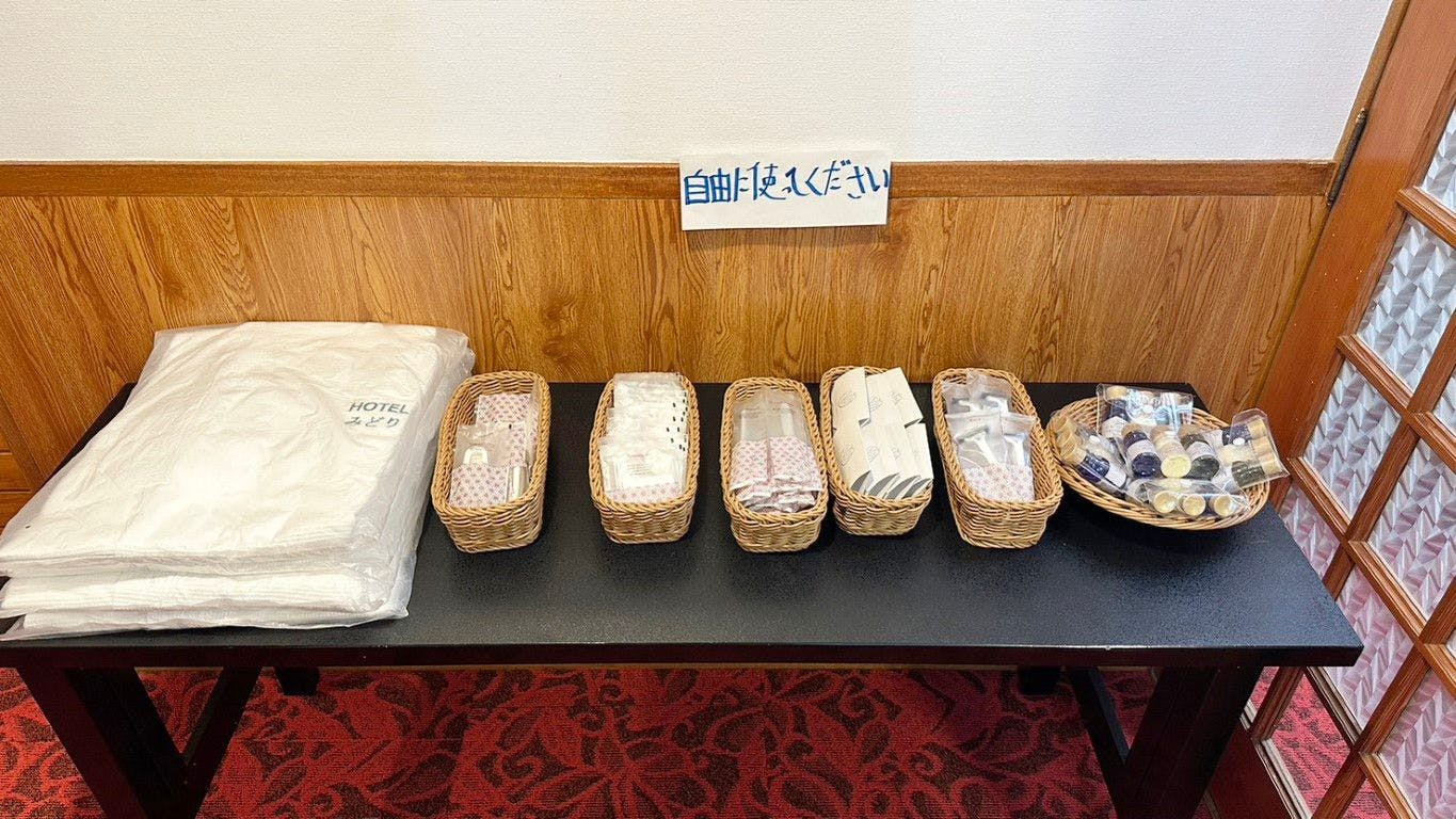 | อื่นๆ | 【เกี่ยวกับสิ่งอำนวยความสะดวก】 มีให้บริการที่แผนกต้อนรับ ・ชุดนอน ・หวี ・สำลีและคอตตอนบัด ・แปรงสีฟัน ・มีดโกนหนวด ・แชมพูและครีมนวดผม |