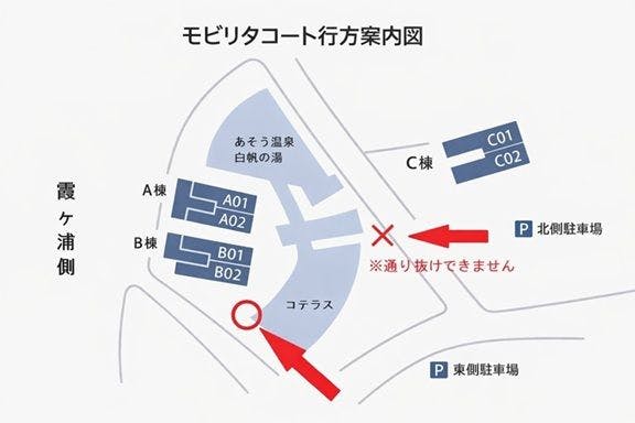 สำหรับผู้เข้าพักห้องพักวิวทะเลสาบ แนะนำให้จอดรถที่ลานจอดรถฝั่ง “ตะวันออก” ของชิราโฮะ โนะ ยู แทนฝั่ง “เหนือ” จะสะดวกกว่า
