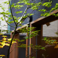 京都の伝統的建物である京町家が現代の建築技術を駆使し1日1組限定の一棟貸しお宿。リビングから眺める坪庭は四季折々の季節を奏で景色を望みながら暮らす。