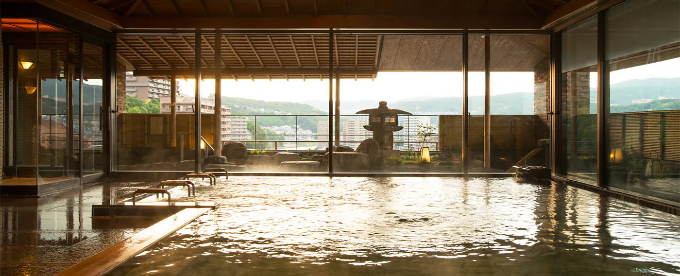 伸展双腿,尽享宽敞舒适的男士展望大浴场。请体验散发桧木香气的纯日式浴池。