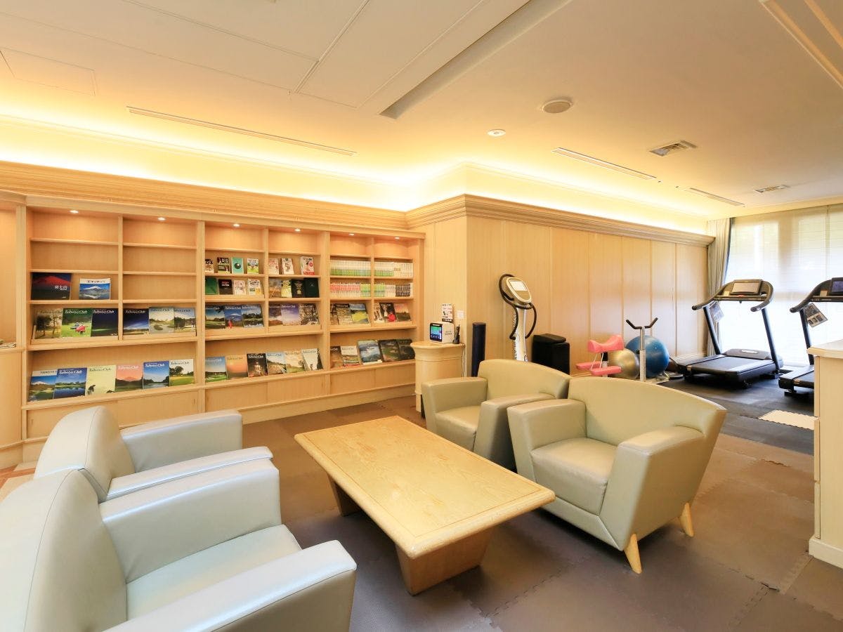 大浴场前设有休闲空间,不仅供沐浴后的客人使用,其他入住的客人也可在此享受愉快的时光。 设施内配备了健身器材,可让您焕发活力,同时还提供丰富的高尔夫相关书籍、漫画等读物,并备有多种饮品,欢迎随时使用。 此外,休息室“Cypress”还配备了卡拉OK设备,让您度过一个愉快的夜晚。 ※Cypress休息室使用费为每人3,200日元(~3小时)。