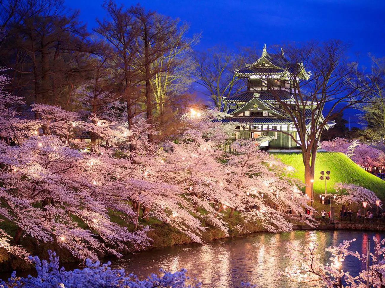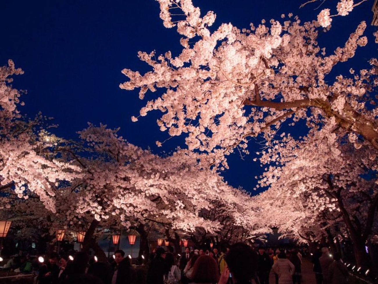 高田城址公园是“日本三大夜樱”之一,包含公园及周边在内约4,000棵樱花被灯光点亮,梦幻般的景致令人震撼。