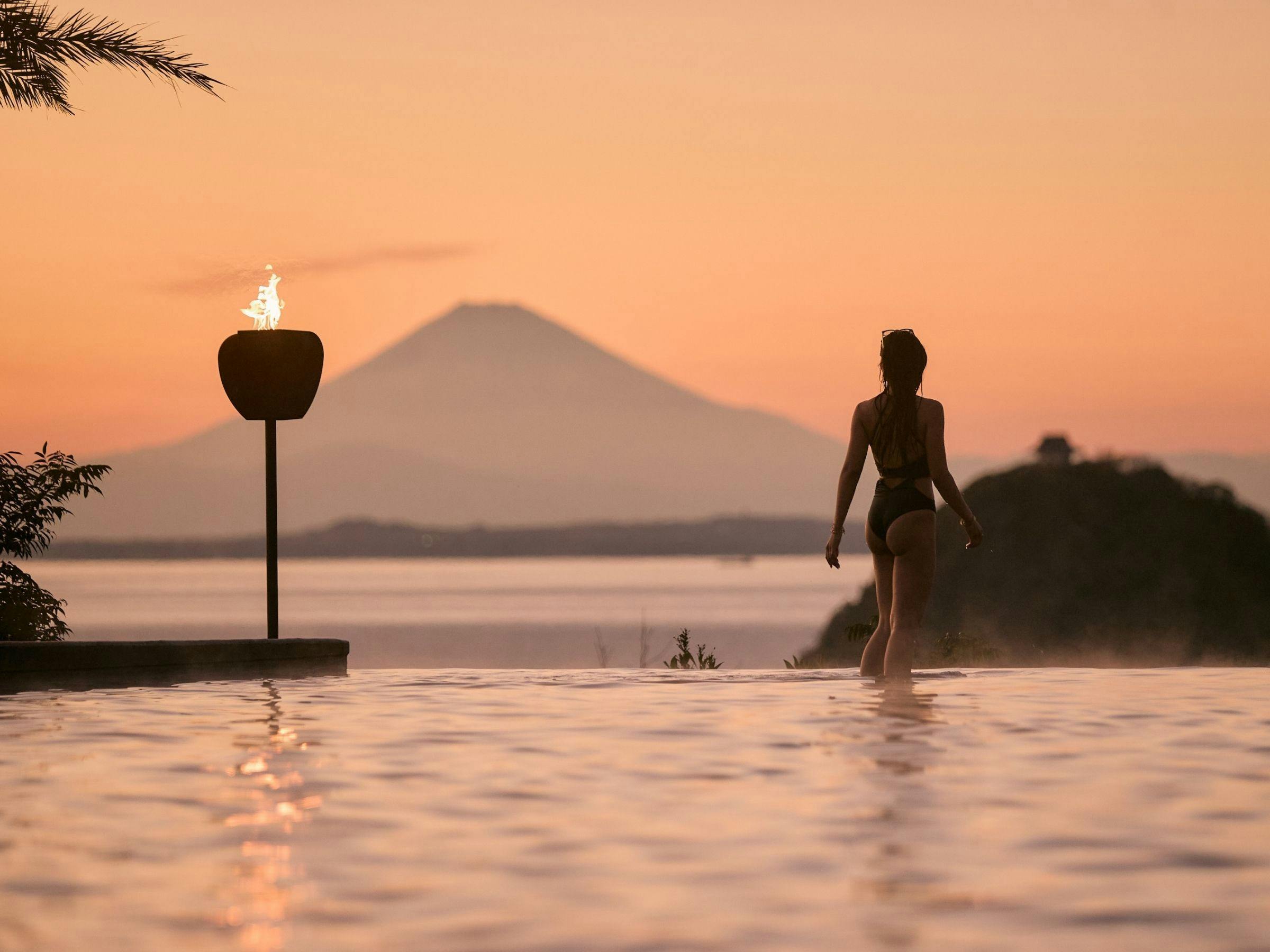 被约300种植物环绕的乐园般空间。初夏时节,温水泳池会根据室外气温调节水温,无论白天还是夜晚都能舒适畅享。柔和的阳光与清爽的微风令人惬意,在池畔度过的时光更是格外难忘。 自4月起,可尽享奢华使用千叶县产水果制作饮品的「LOCAL FRUITS BAR」登场。此外,还将推出全新菜单,周末更有DJ现场音乐助兴,为您的入住增添更多精彩。请在无边际泳池「BLACK POOL」眺望迷人夕景,亲身感受初夏独有的开阔惬意时光。