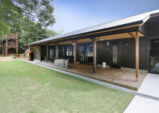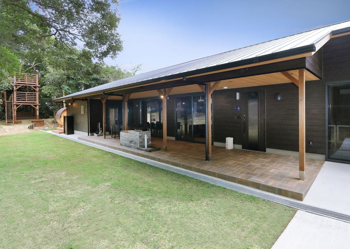 在可以一览明石海峡的绝佳位置,周围被森林环绕的私人空间中,设有海风露台。 穿过住宿者专用的汽车通行门,眼前便是一个可以感受海洋与森林的私人空间。海风露台是一栋拥有三个不同概念空间的出租别墅。 “游乐露台云居”配备滑梯、吊床和柴火炉,是充满趣味的房间。 “休闲露台月笼”拥有古民家风格的沉稳内饰与照明、围炉,可以度过高品质成人时光的房间。 “连接露台宙庭”以“连接”为概念,设有私人宠物跑道和200坪的庭院,是可以与宠物舒适共度时光的房间。