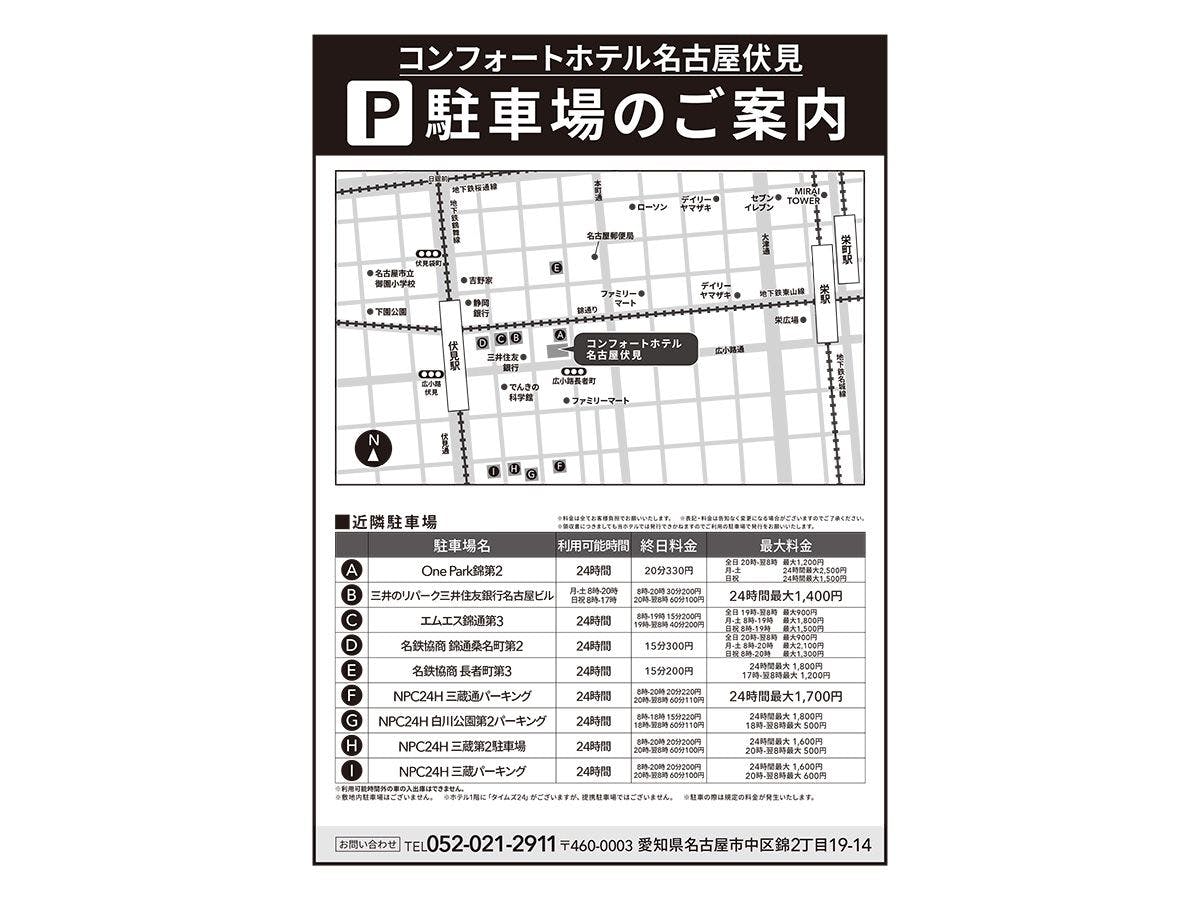 ■地铁“伏见站”3号出口步行4分钟,“荣站”8号出口步行8分钟 ■从“中部国际机场”站乘坐名铁线至“名铁名古屋”站约28分钟,从“名古屋”站乘坐名古屋市营地铁东山线至“伏见”站约3分钟。 -------------------------------- 【关于停车场】 非常抱歉,本酒店没有专用停车场。 驾车前来的客人请将车辆停放在附近的投币式停车场。 ※酒店一楼设有“Times24”,但并非合作停车场,停车时需支付规定费用。