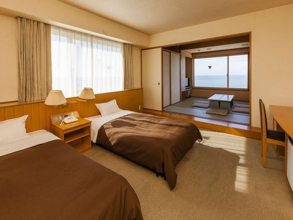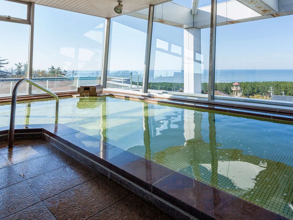 本馆建于海拔30米的高地,大浴场位于4楼,可俯瞰日本海。浴场分为“海彦”和“山彦”,男女浴场每日轮换,因此可享受不同的景色。两侧面向大海的玻璃窗设计宽敞明亮,“海彦”可眺望一望无际的日本海和佐渡岛,而“山彦”不仅能欣赏到日本海,还能看到北侧从田园风光延绵至灵峰弥彦山。此外,您还可以在泡汤时观赏夕阳沉入日本海的美景。