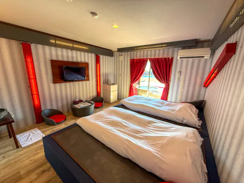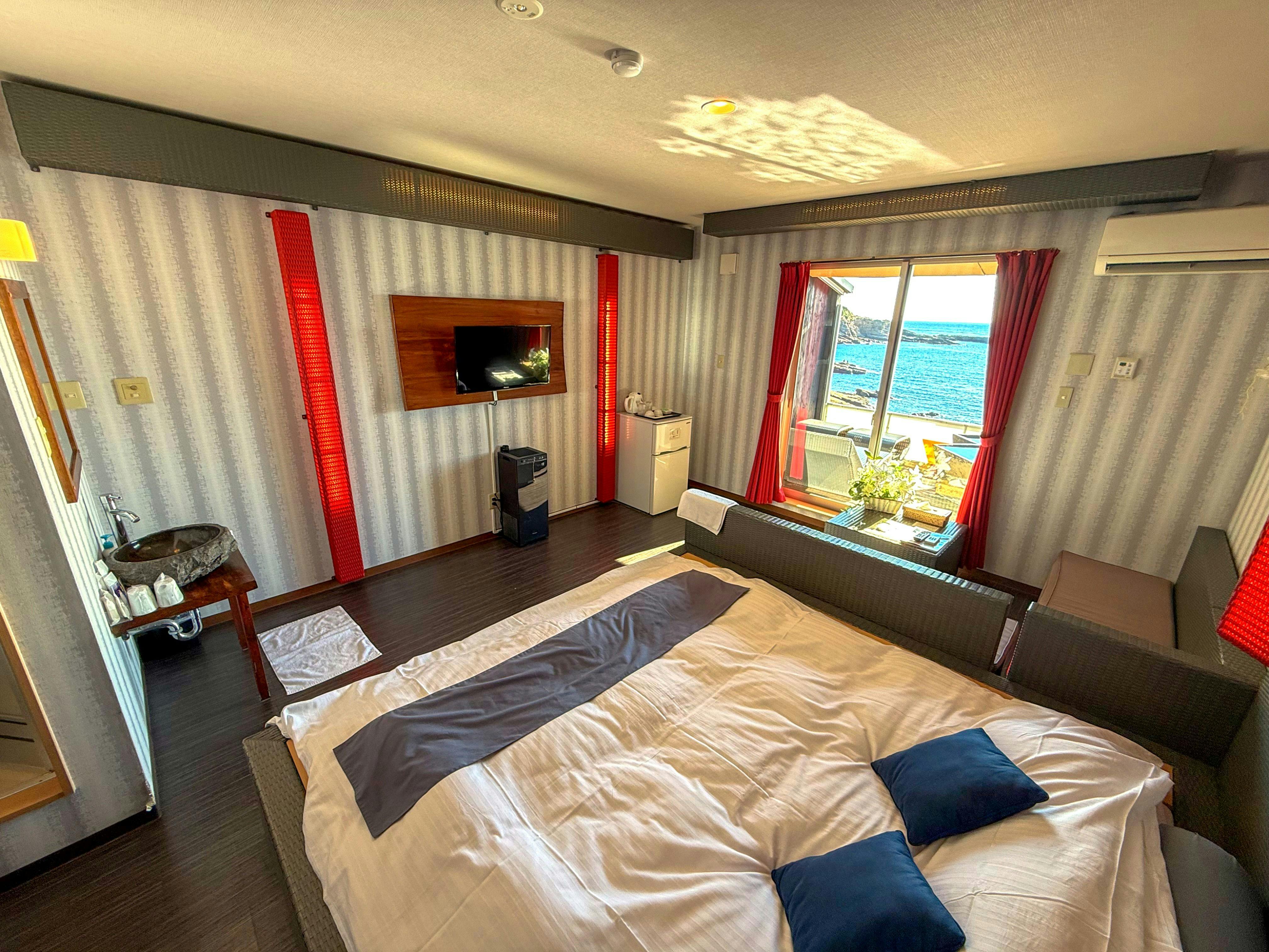 Stayed on March 6.The Room was spotless and very clean.Having a private open-air Onsen bath in the guest room was the best part.We were satisfied with both the quality and quantity of the meals,and it left a strong impression that the owner visited every table and explained everything so carefully,which showed how much passion they have for this Hotel.There was a power outage that night due to lightning, but the staff responded quickly and flawlessly.After power was restored, we were also glad to be able to see the laser message display.Finally, we even got to experience a seaside drive in a Rolls-Royce convertible, making it an extremely satisfying trip.We will definitely return.