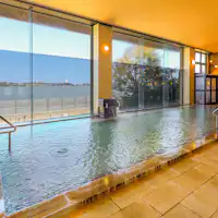 从加贺温泉站乘坐接送服务巴士约15分钟即可到达湖畔的温泉住宿。在充满开放感的大浴场中,可以一边欣赏四季变幻的柴山潟自然美景,一边享受温泉。庭院内设有足汤,让您度过优雅的时光。餐饮方面提供五感品味的美食自助餐,注重外观美感的菜品让您的心情更加愉悦。馆内设施齐全,包括卡拉OK、乒乓球等娱乐角,以及销售当地特产的早市等。