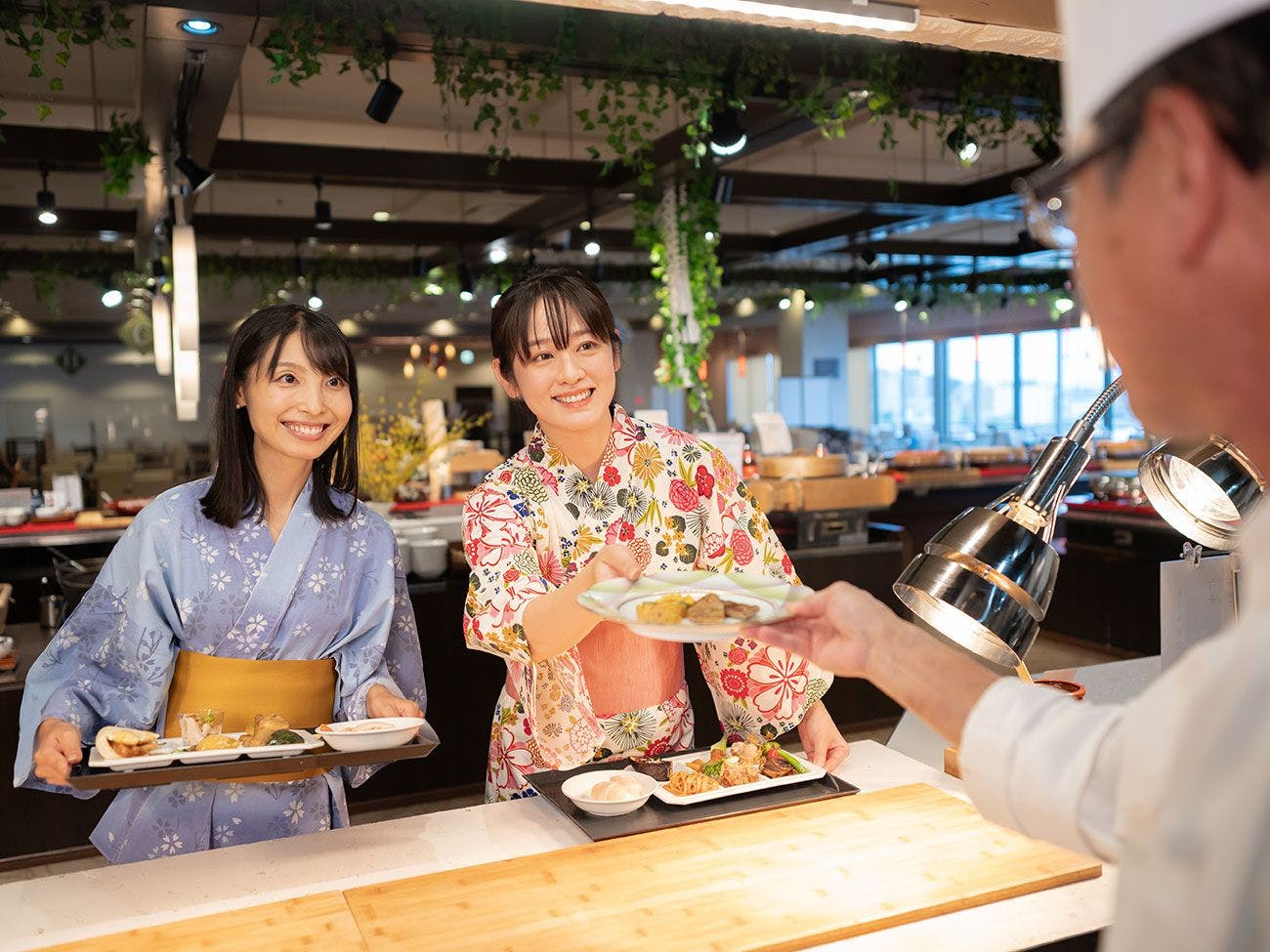 石川县/片山津温泉湖畔的温泉住宿,令人心安的开放式大浴场,五感品味的美食自助餐。