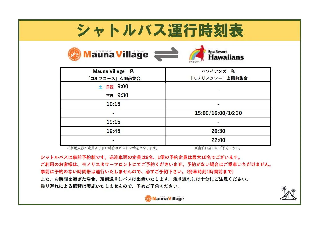 ※“夏威夷乐园快线”的发车和到达地点为Spa Resort Hawaiians。