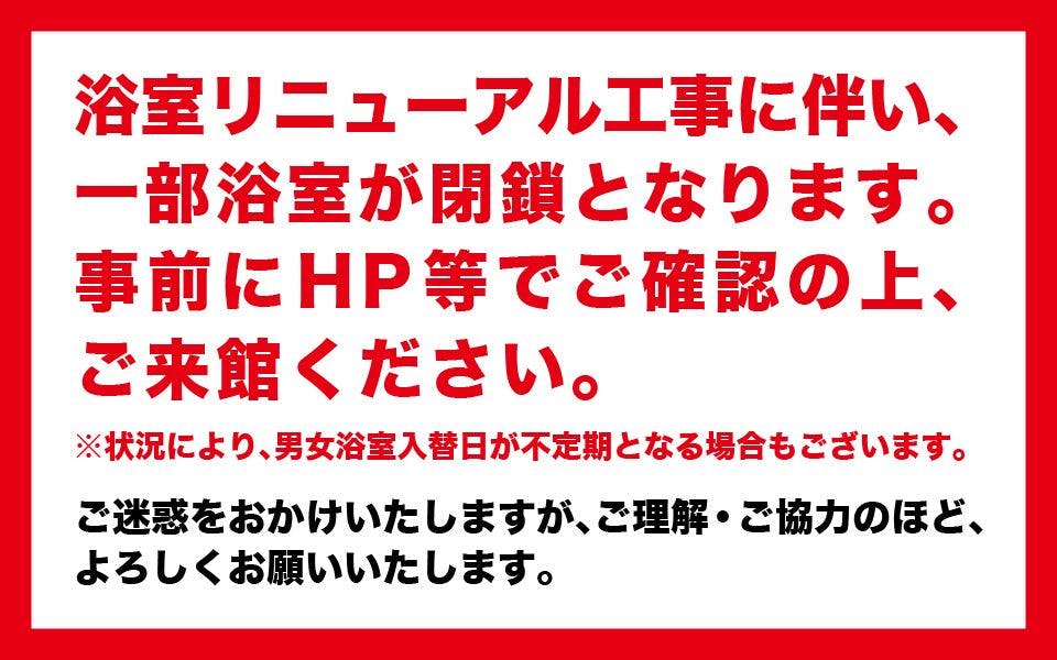 | 岩盘浴 | 有工作日:800日元 周六、周日及法定节假日及特别日期:1000日元 ※10:00~次日5:00(最晚受理4:00) |