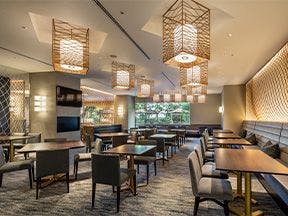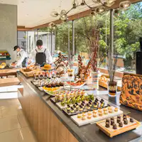 「the square ザ・スクエア」擁有1,700平方公尺的寬敞空間,設有自助餐廳「フォレストガーデン」、燒烤與義大利料理餐廳「アチェンド」,以及酒吧休息區「シルバ」三個區域。在以河流、玻璃瀑布等水流元素劃分的開放感十足的室內設計中,專業主廚為您精心準備各式美食,敬請享用。