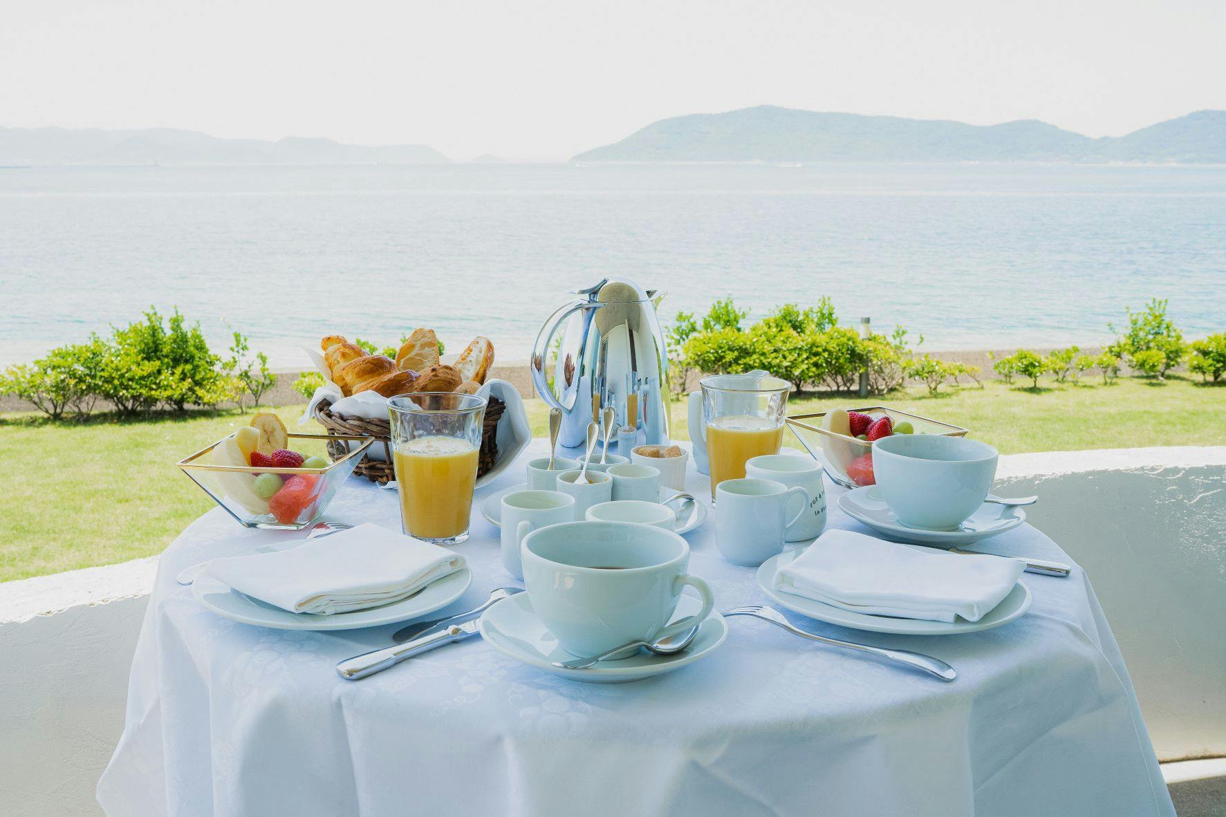 由法式料理主廚打造、僅有5間房間的 Auberge de Oishi。晚餐在屋島山麓、被綠意環繞的餐廳享用。住宿則是在面向瀨戶內海的海邊房間。漫步四季小徑,或聽著浪聲翻開一本書……。 在簡約之中享受奢華時光——這是一間彷彿坐落於法國鄉間的旅宿。