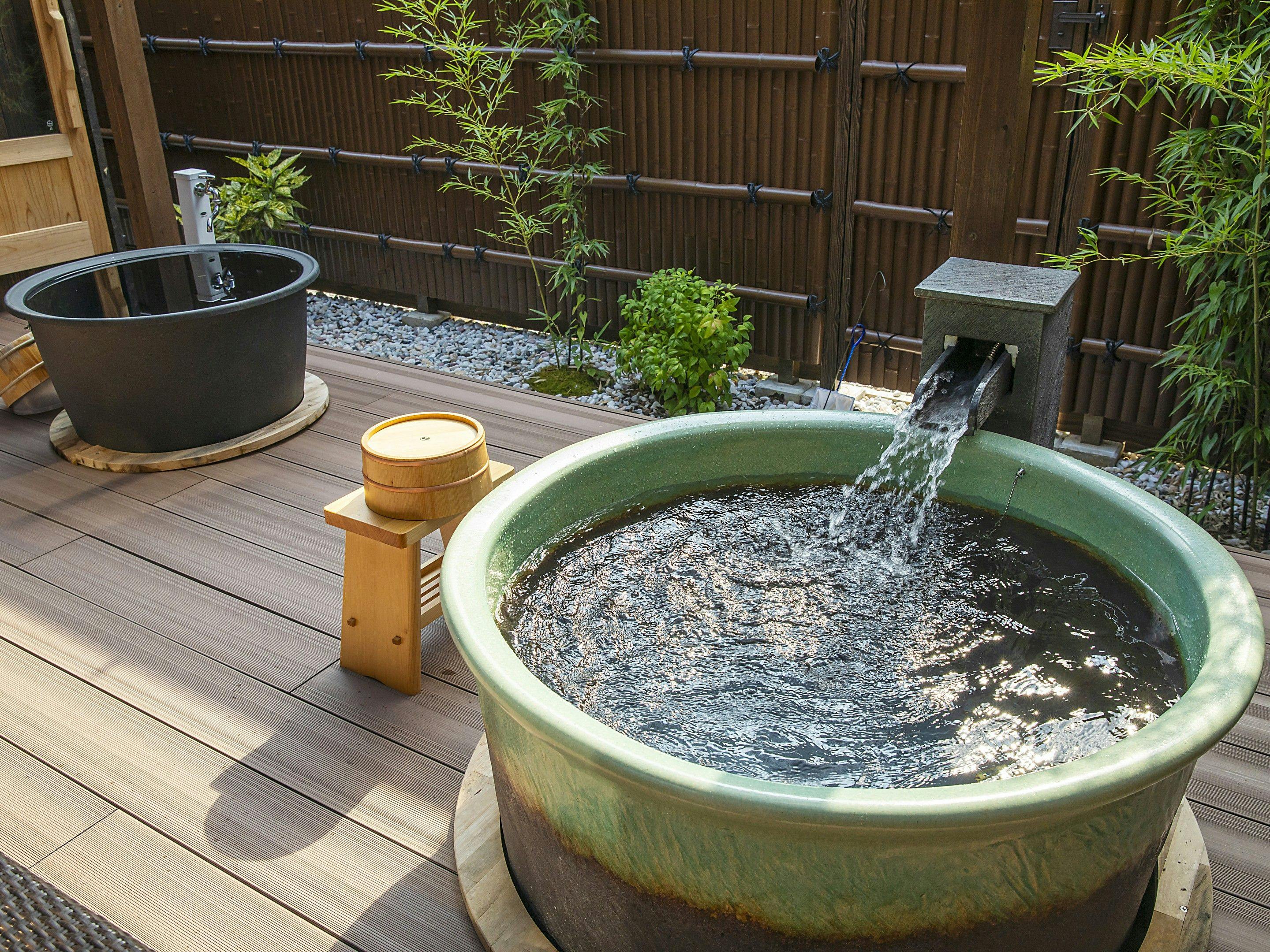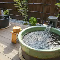 浴池的水雖然不是溫泉,但我們使用從高千穗峽的玉垂瀑布汲取的神聖之水。您還可以享受每間客房風格各異的浴池。