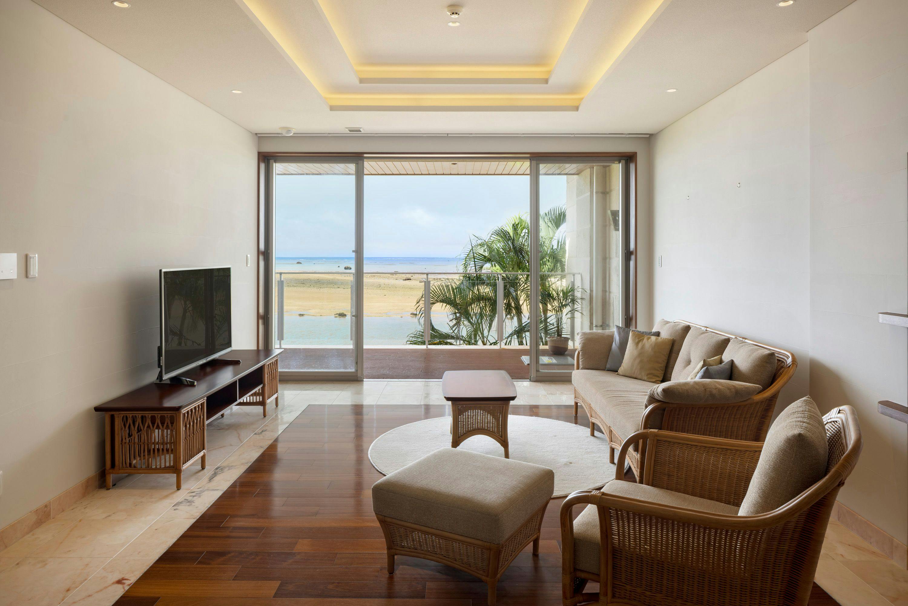 在石垣島屬於最大級寬敞的公寓式套房中,享受悠閒的度假住宿。除了寬敞的客廳與臥室外,亦配備廚房、洗脫烘衣機等適合長期入住的完善設施。您可在泳池或花園放鬆度過,也能在休憩酒廊享用飲品,館內時光同樣豐富充實。無論是家庭旅行或團體出遊,都能在寬裕舒適的空間中,愜意度過石垣島假期。