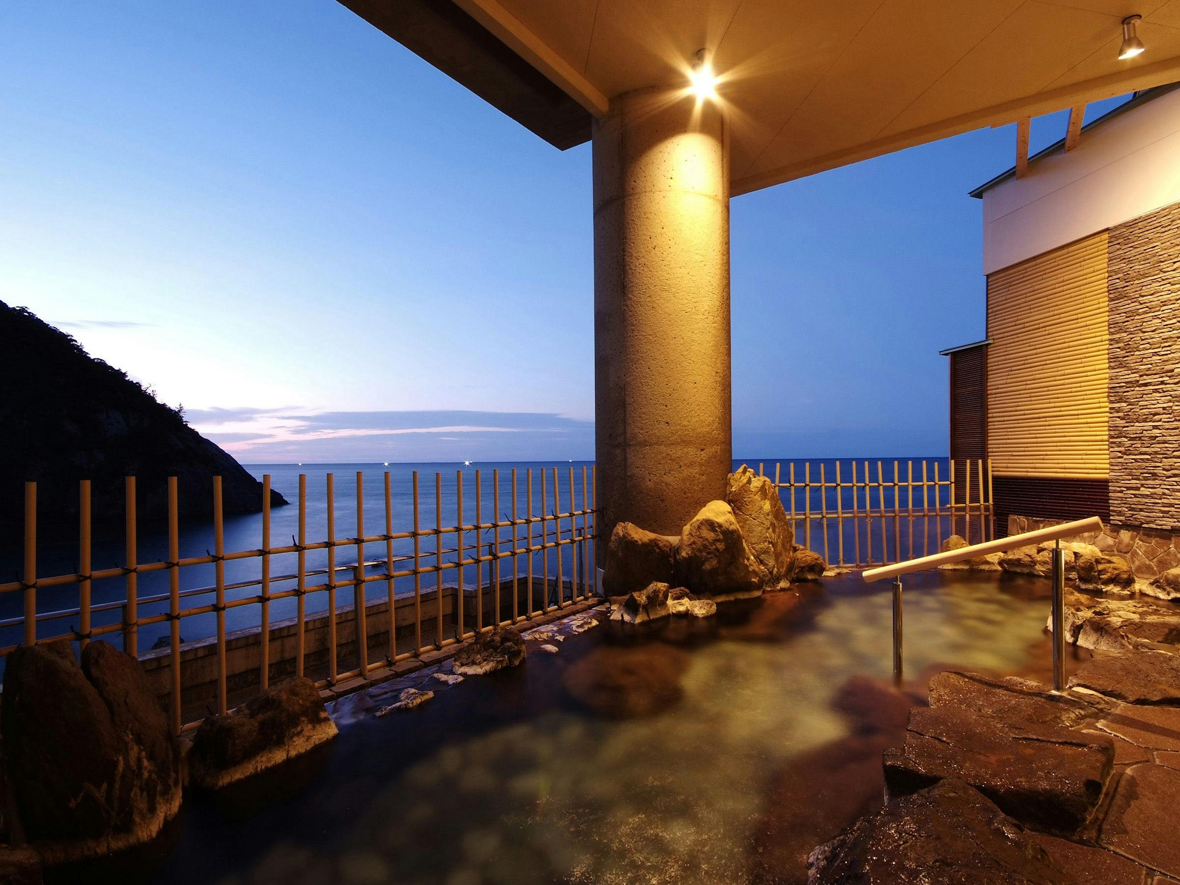 將壯闊延展的日本海全景盡收眼底,在引以為傲的溫泉中讓身心徹底煥然一新。帶有些許鹽分、源自遠古的大自然恩惠,泡湯後仍能持續暖呼呼,並因能提升肌膚光澤而深受喜愛。男女浴場皆設有露天風呂,另備有打瀑湯與三溫暖等療癒設施。歡迎您不必客氣,隨時多次入浴,盡情享受其美好魅力。