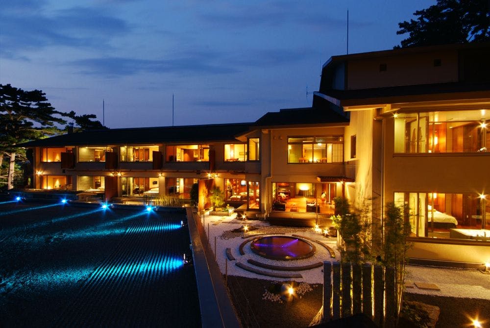 飯店金波樓距離城崎溫泉街約4公里,位於山陰海岸地質公園首屈一指的景勝地——日和山海岸,是可一覽壯闊日本海景致、以絕佳視野自豪的住宿。冬季可品嚐松葉蟹及日本海的各式海鮮美味。