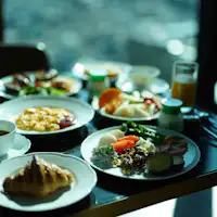 | 早餐 | 可選擇主菜的半自助式早餐。 我們注重每一道料理的美味,提供西式、日式以及純素餐點。 在陽光舒適灑入的開放空間中,享受奢華的早晨時光。 (每人5,500日圓) |
