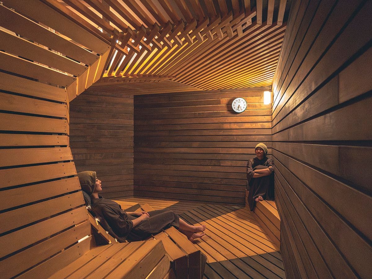 被木質香氣包圍,能悠閒坐著、暢快流汗的【乾式三溫暖】 在豐富蒸氣中充分保濕,從身體內側暖起來的【蒸氣三溫暖】兩種可選。 除了水與排毒水等飲品外, 也備有手指小點與讓發熱身體感到舒爽的冰品之【放鬆休憩室】,設備齊全。
