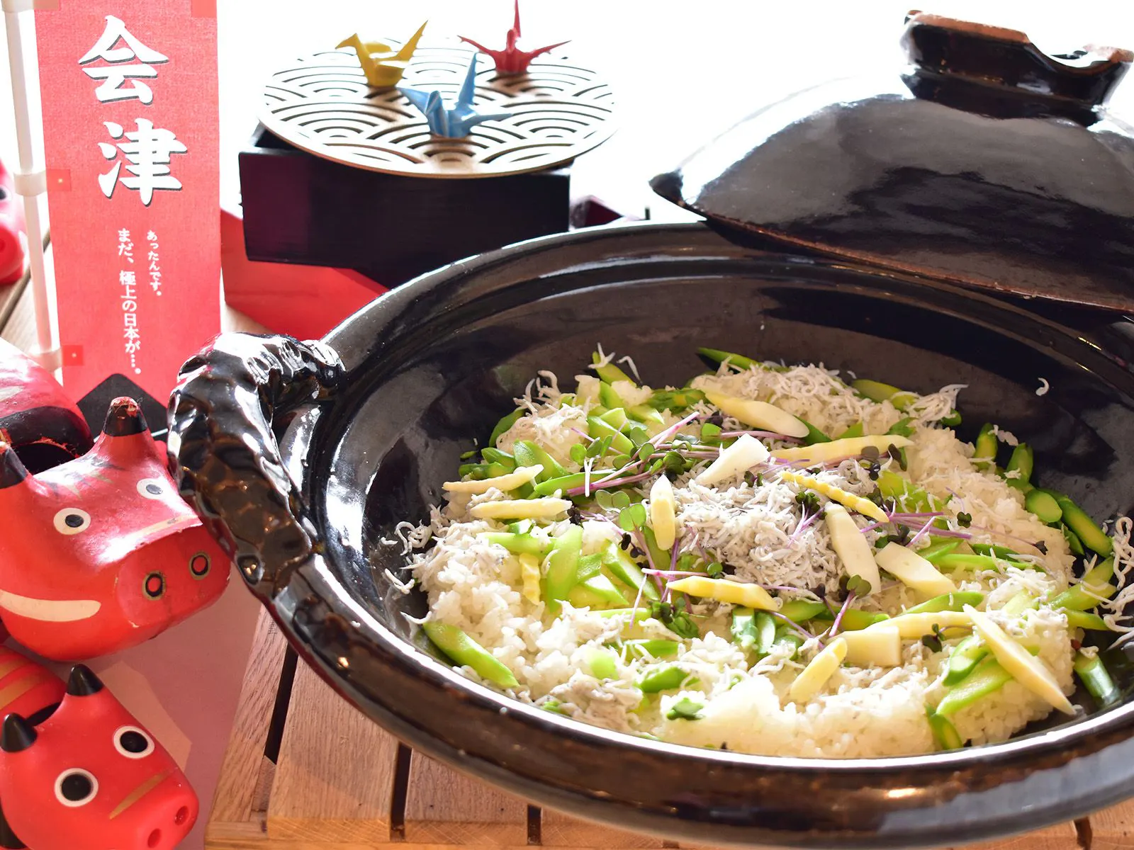 嚴選生長於會津豐饒土地的新鮮蔬菜,以及福島常磐外海捕撈、風味十足的吻仔魚,奢華入飯一同炊煮。