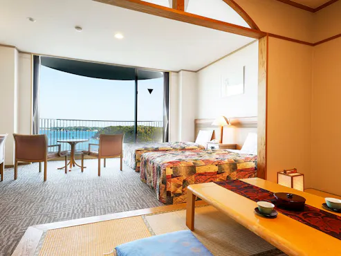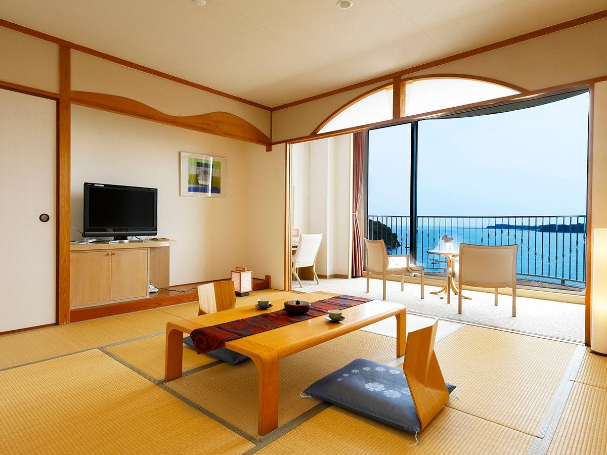 雄偉的的矢灣景色盡收眼底,為您提供符合旅遊風格與場景的房間。俯瞰下方可見的矢灣、安乘燈塔、渡鹿野島以及太平洋壯麗景觀。在特定天氣條件下,還有機會看到富士山。
