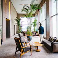 為您的住宿增添優雅氛圍的舒適飯店。從地鐵中洲川端站步行1分鐘即可到達,距離博多站交通便利,搭乘電車至福岡機場約10分鐘,是觀光與商務的理想地點。飯店提供原創的舒眠床鋪、女性專屬樓層,以及最上層可悠閒放鬆的展望大浴場「中洲山笠之湯」,讓您享受療癒時光。在飯店Resol Trinity博多,體驗獨一無二的空間,盡情享受您的住宿時光吧!
