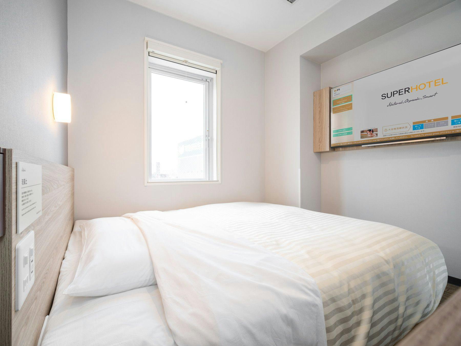 I stayed here on a business trip. The Room is compact but functional, with no complaints. The bed was a larger queen size and very comfortable, so I slept well and could really relax. The welcome bar at dinner time had a wide selection of alcoholic drinks and soft drinks, and there was also a microwave, which was great—I could enjoy dinner with the bento and side dishes I brought in while having a drink. I also appreciated the Onsen public bath; I could check how crowded it was on the in-room monitor, so I could bathe comfortably without stress. Breakfast was delicious as well—especially the freshly baked bread, which was so soft and tasty that I wished I could buy some to take home. The staff responded quickly to my requests, which I thought was excellent. This was my first stay with the Super Hotel chain, but I would definitely choose it again for future solo business trips.