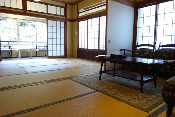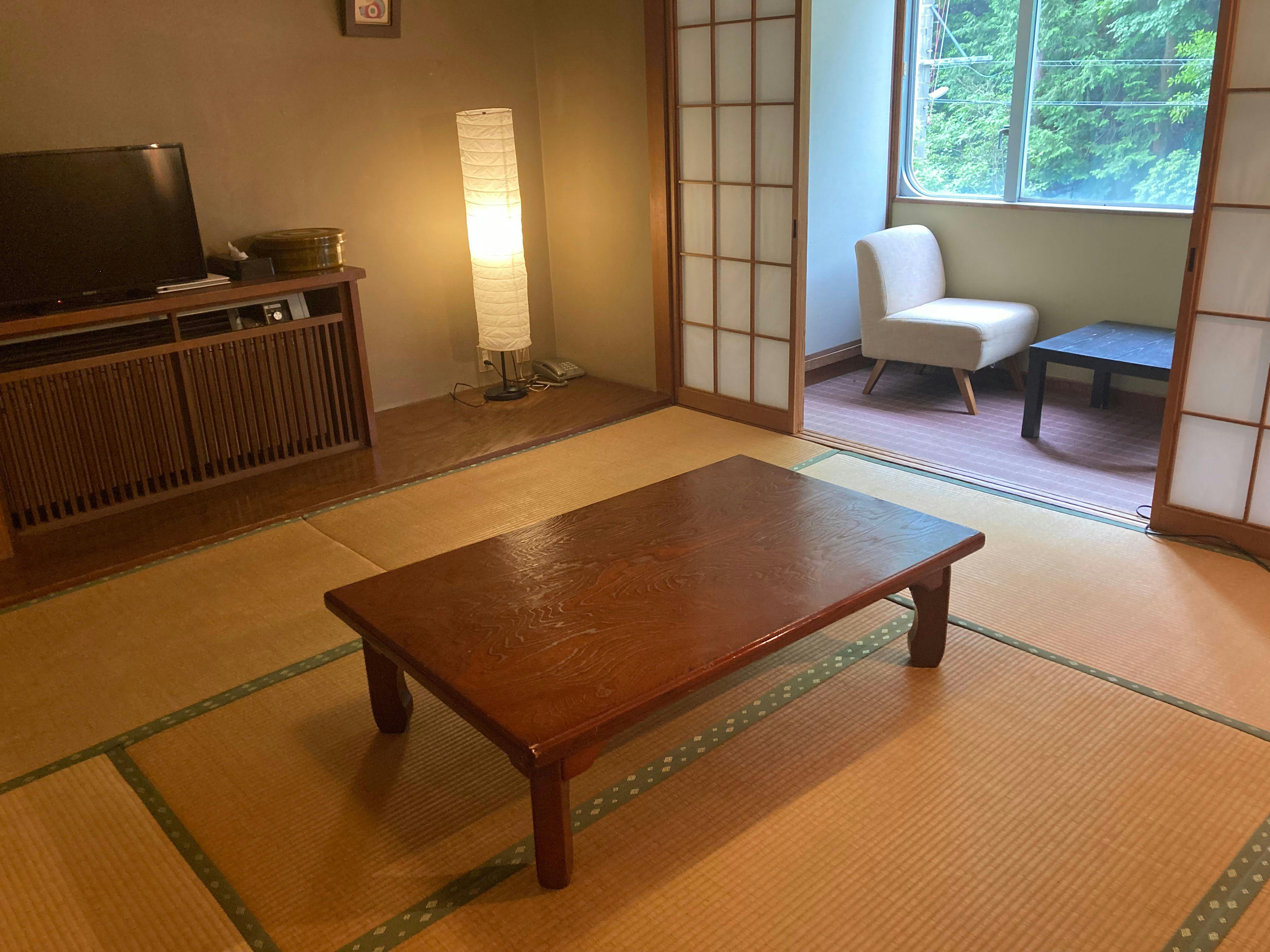 可以眺望御在所岳的住宿。可以感受到昭和時代的氛圍。大浴場為半露天浴池,可以一邊聆聽眼前三瀧川的清流聲,一邊眺望御在所岳。夏季期間,窗戶會完全打開,讓您感受到彷彿置身於森林深處泡溫泉的感覺。