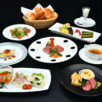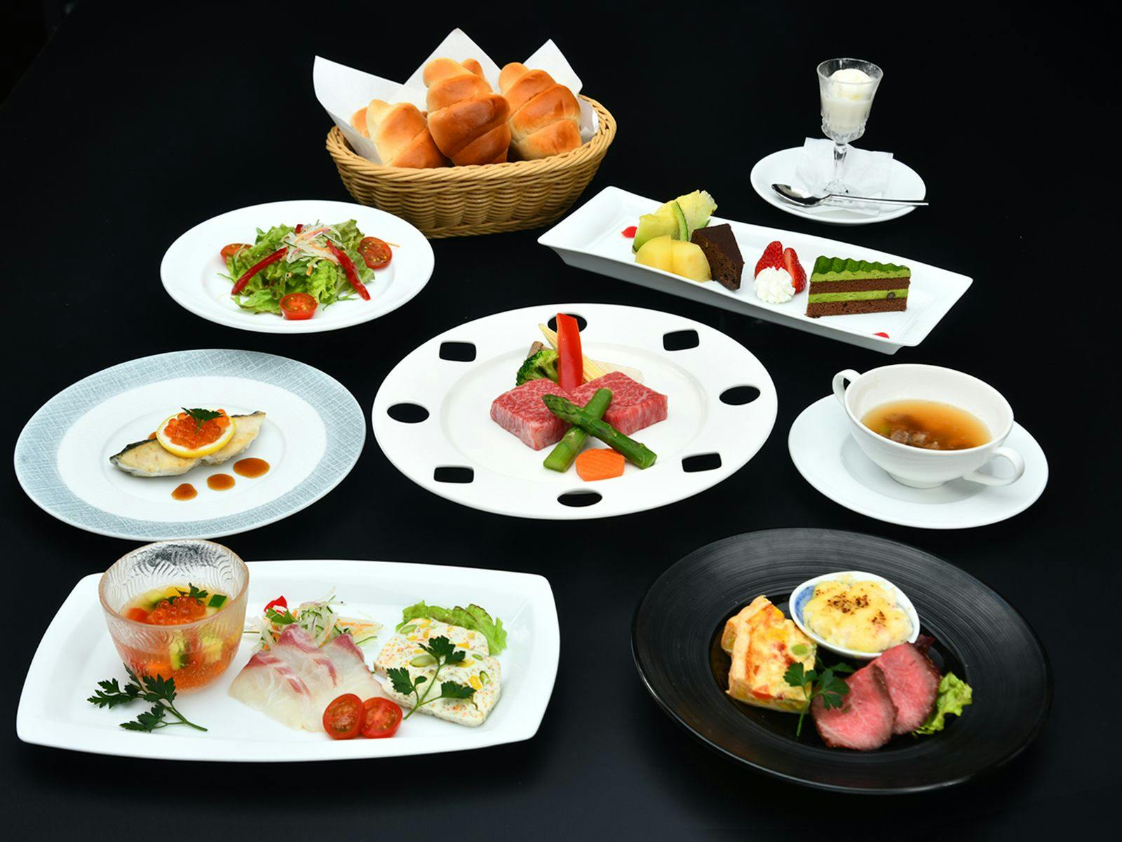 わん泊亭的晚餐方案大致分為三種! 根據您選擇的方案而有所不同。 ①房間用餐 選擇房間用餐方案時,晚餐和早餐都可以與愛犬一起在房間內享用。 ②わん泊亭內的榻榻米地板休閒餐廳 這是一家配備排氣設施的休閒餐廳,也提供炭火燒烤。 ③姊妹館餐廳 我們提供飯店くさかべアルメリア(Kusakabe Arumeria)的自助餐專用餐廳,或是磚牆和霓虹燈裝飾的時尚餐廳的會席套餐。