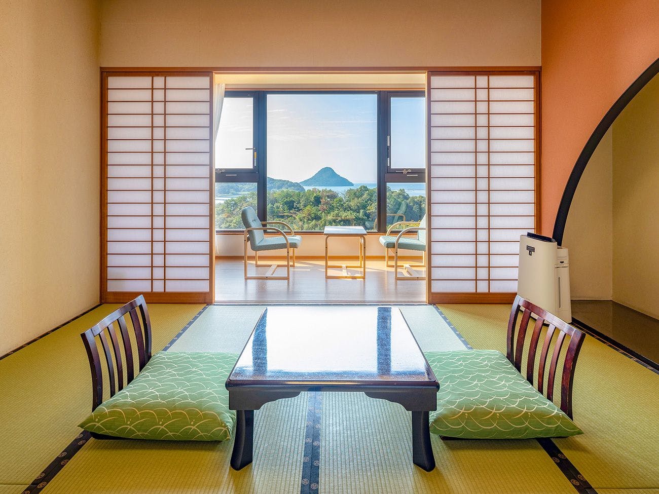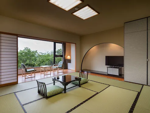 黃昏時分,整個地區變成被橙色籠罩的神秘景觀。從露天溫泉、浴後休息區以及部分客房都可以欣賞到天草富士。位於高處的本館露天溫泉是眺望遠方海上浮現的天草富士的最佳位置!在您腳下的天空、大海和自然豐富的山脈中,享受一段療癒的時光吧。