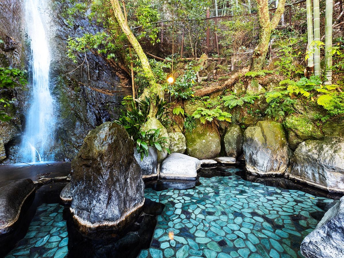 在豐富的奧湯河原自然地形中,有一間住宿。青巒莊的代名詞「仙境 野天風呂」位於落差38公尺的「白龍瀑布」下方。 在未經開發的自然所編織的綠色風景中,伴隨著瀑布洗滌過的新鮮空氣,浸泡在溫泉中療癒身心,這是青巒莊獨有的奢華享受。 與之相鄰的是充滿野趣的「竹林之湯」,雖然男女分開使用,但「竹林之湯」也可根據條件及預訂進行包場使用。 請與重要的人一起度過難忘的時光。