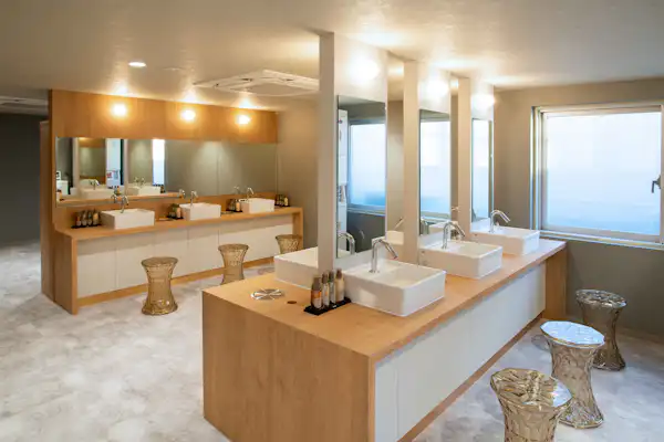 關於大浴場的使用,為確保浴場內及桑拿室內的人際距離,我們實施入場限制。此外,也請盡量避免交談。