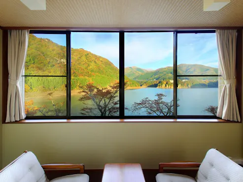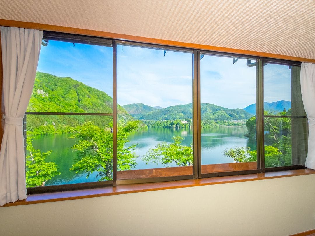 從所有客房都可以一覽三國連山和赤谷湖,從走廊的窗戶可以欣賞到傳統的日本庭園,增添四季的旅行情趣。