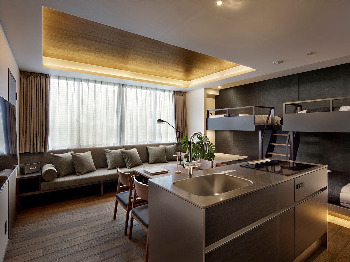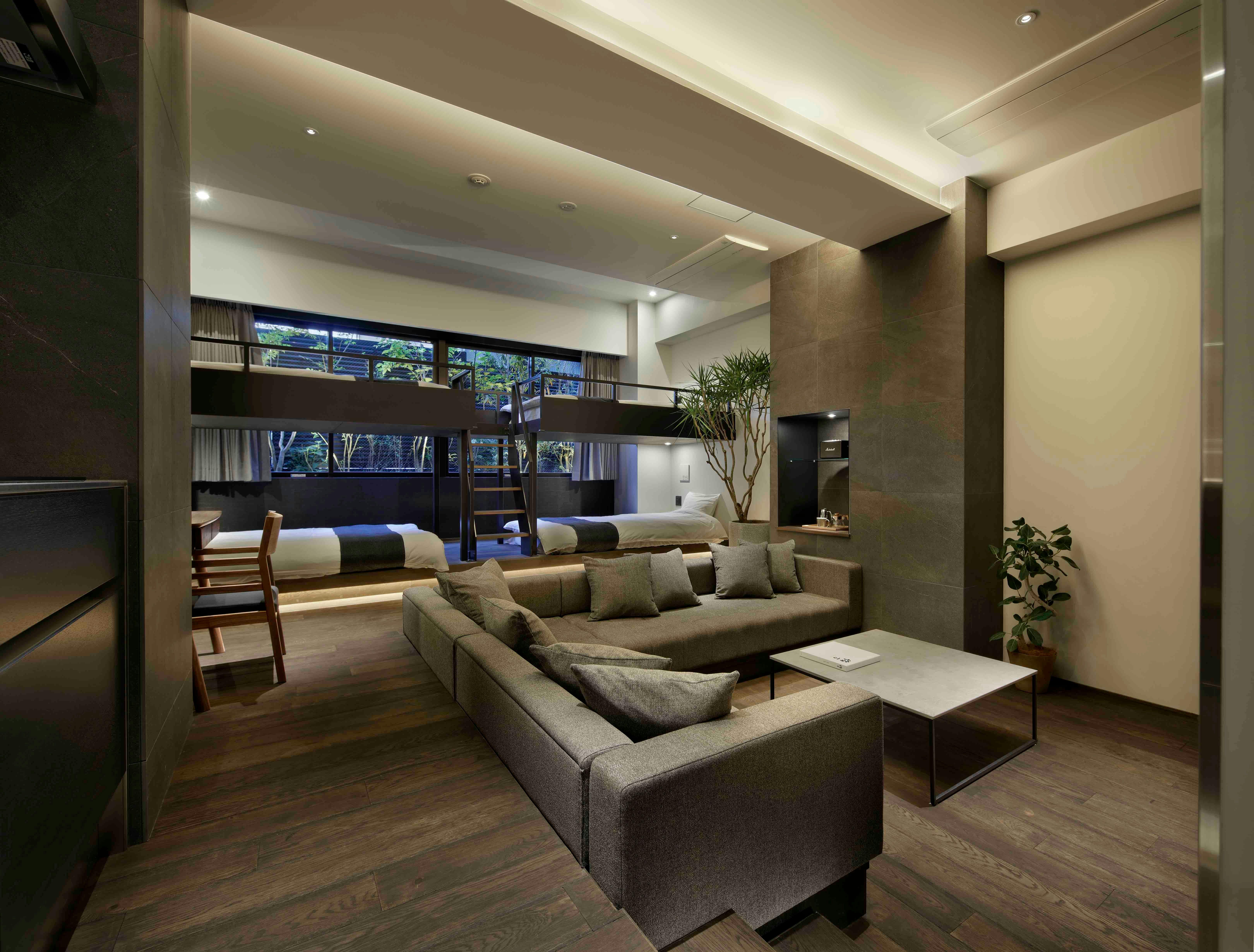 客房平均面積50平方米,配備廚房、閣樓式床位空間,以及完善的客廳和餐廳空間。適合四人以上的團體使用。我們還提供以「與重要的人一起」為主題的各種租賃物品。在開放且隱私保護的空間中,享受美好的京都之旅。