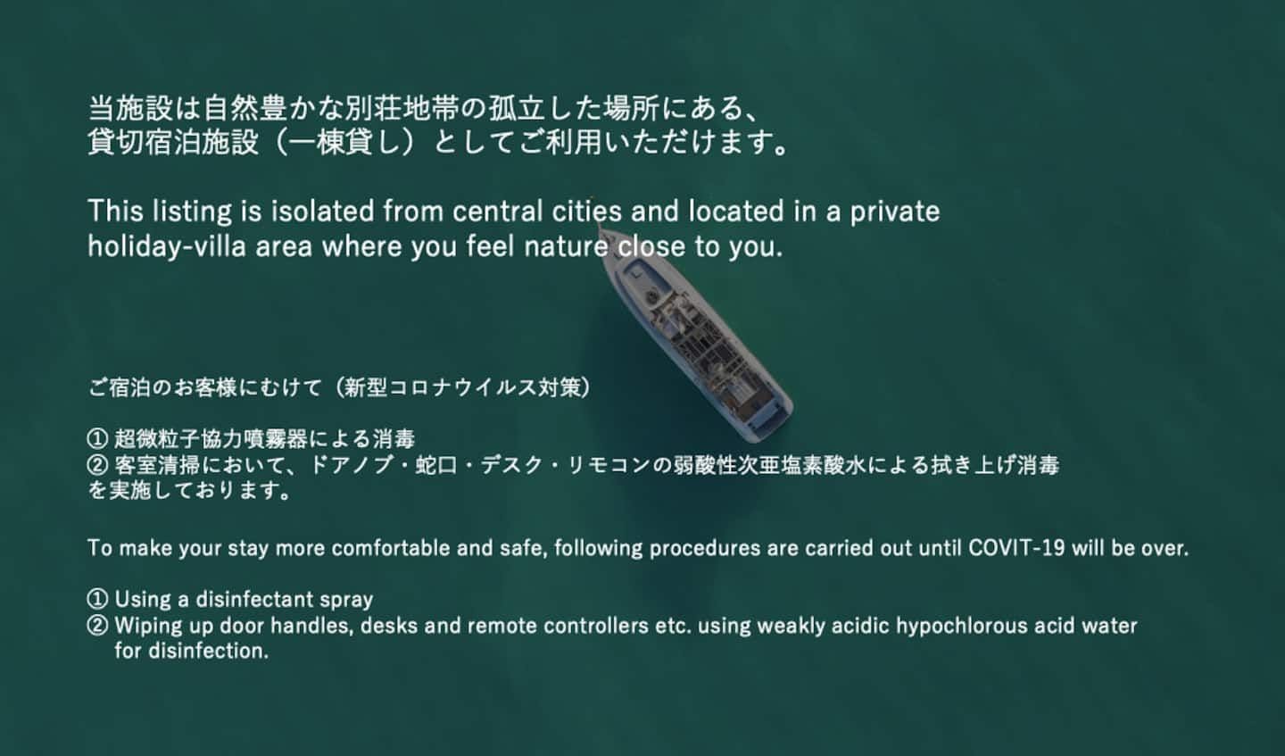 | 關於衛生措施 | 館內清潔方面,由健康狀態良好的清潔人員佩戴口罩,在入住前進行擦拭消毒等作業,並徹底進行通風。 |