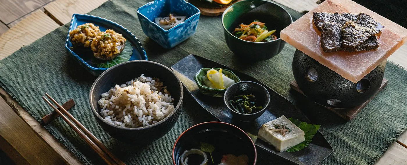 晚餐將以BBQ(夏季)與火鍋(冬季)形式供應,嚴選大量使用在地岐阜食材。 <BBQ>以在地引以為傲的「安心豬」、 「飛驒牛」與「香魚」為主,搭配現採夏季蔬菜的BBQ。 <火鍋>以在地採收的白菜、白蘿蔔、香菇為基底,提供新鮮肉品與魚類。 菜單將依四季時令調整。