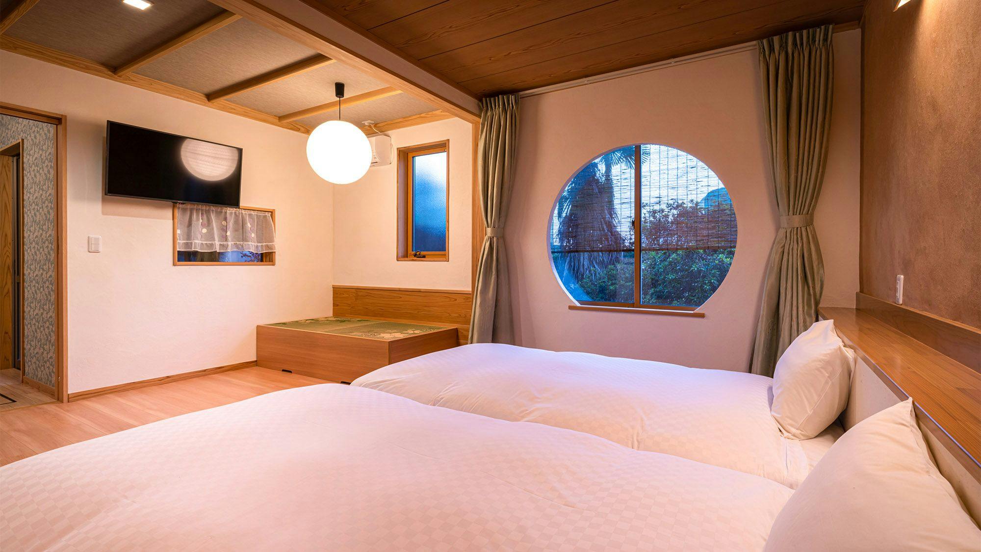 除了附有露天溫泉的房間外,還有本館和舊館。 請在懷舊的和風空間中悠閒度過。全房間皆配備有洗淨機的廁所。