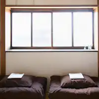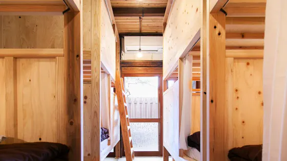 我們透過住宿所傳遞的是更貼近當地的城市魅力與人與人之間的連結。 「有許多流浪貓的鄰近寺廟」、「只有當地人才知道的老字號咖啡店」、「熱情老闆經營的美味串燒店」以及「能享受平凡城市風景的散步小徑」。 希望這座城市的「日常」,能成為來訪者的「非日常」。 ■ 古民家特有的舒適內裝 雖然淋浴間和廁所等水回設施已經翻新,但牆壁和天花板仍保留築百年的原始內裝。即使是第一次來,也能感受到安心的氛圍。還有一個中庭,想像夏天坐在緣側喝著手工啤酒,心情就會雀躍不已。 ■ 清風徐來的共享空間 一樓的CAFE & BAR與共享空間相連,入口處挑高設計,微風輕拂,充滿開放感的空間令人心曠神怡。還設有共享廚房,來自各地的客人可以一起舉辦鍋物派對或聚餐,樂趣無窮。 ■ 步行5分鐘即可到港口 步行5分鐘即可到達博多港。感受海風散步的體驗格外特別。 這裡有名為「博多灣岸廣場」的複合商業設施,從購物到美食應有盡有。緊鄰博多港埠頭旅客航站,設有市營渡輪、博多灣遊船等旅客航站,還有地上70公尺高的博多港塔(免費入場)、巨大的圓柱型水族箱、以及經營農水產品的灣岸市場等多樣化的設施。